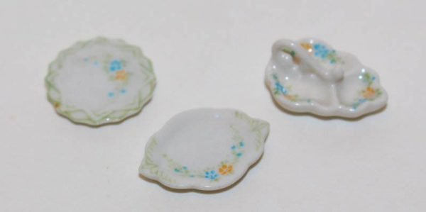 Set of 3 white and blue flower, china serving plates. 2w x 1.5d cm.